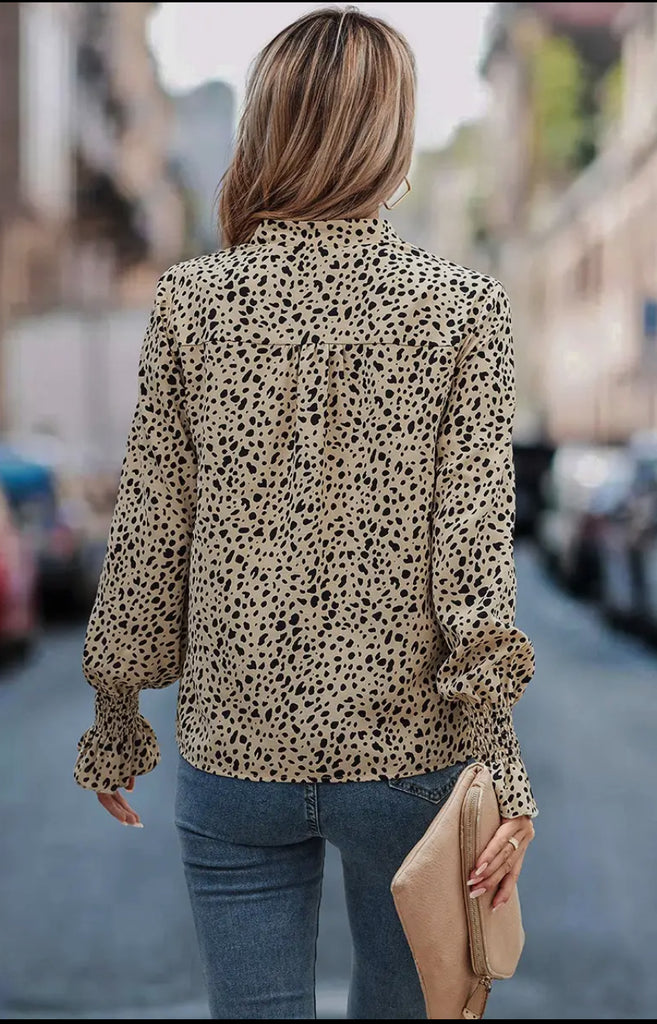 All Over Print V Neck Long Sleeve, Beige