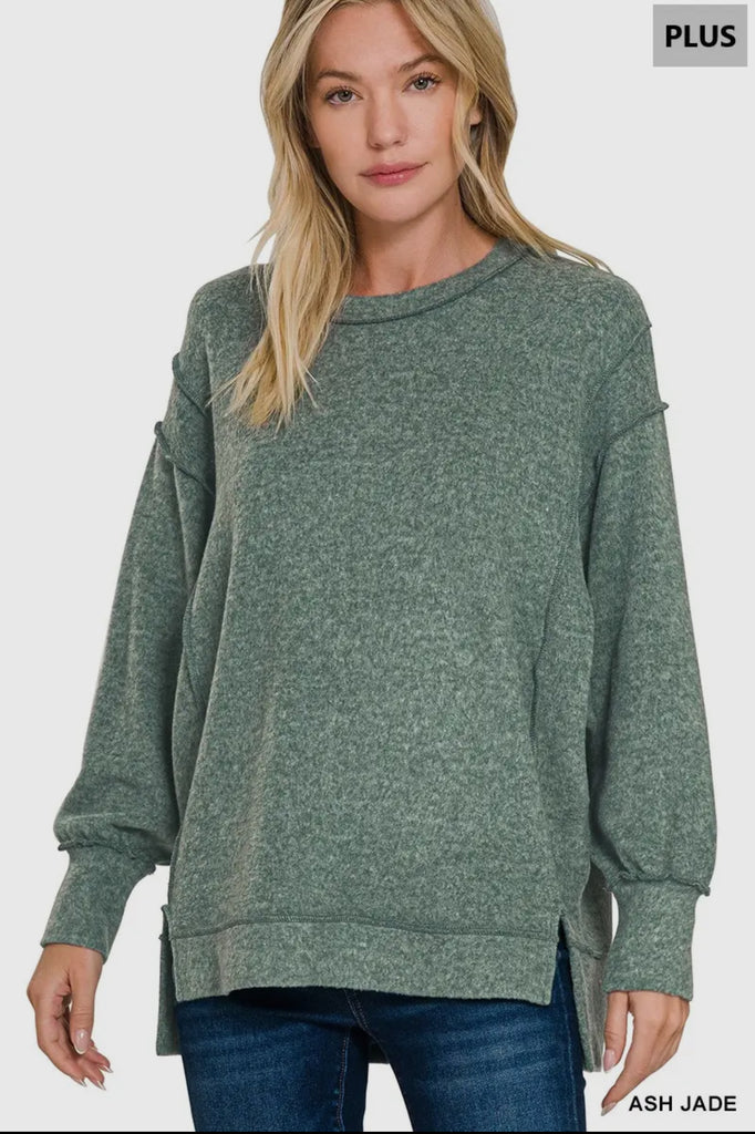 Brushed Melange Hacci Oversized Exposed Seam Sweater, Ash Jade, Plus Size