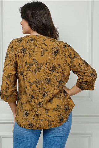 Effortlessly polished, this plus-size blouse features a sleek mandarin collar and a button-front placket for a clean, modern look. The 3/4 roll-tab sleeves add versatility and a touch of relaxed charm, making it easy to style for workdays or weekends. Designed with a flattering fit and timeless appeal, it's a wardrobe essential that pairs well with both trousers and jeans.