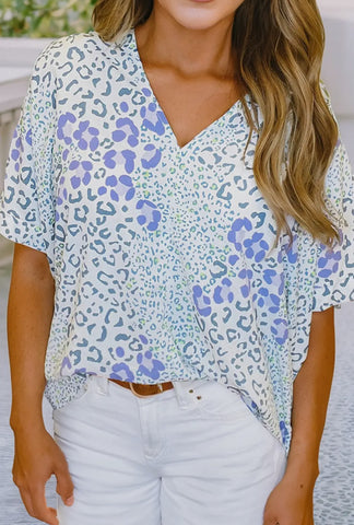 Blouse - Colorblock Floral Patchwork Flared Sleeve Top