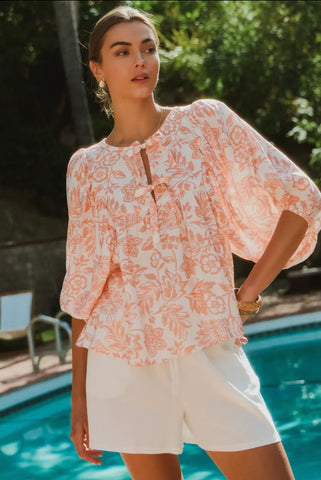 Blouse - Puff Sleeve Lightweight, Floral Pattern