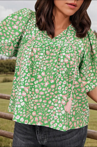 Blouse - 3/4 Pleated Sleeve Casey Top, Green
