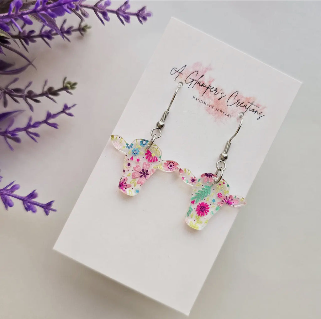 Jewelry - Micro Floral Cow Acrylic Earrings