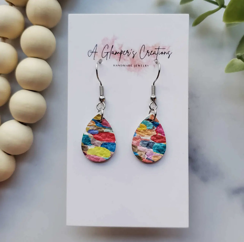 Multi-Color Brushstroke Mini Teardrop Leather Earrings