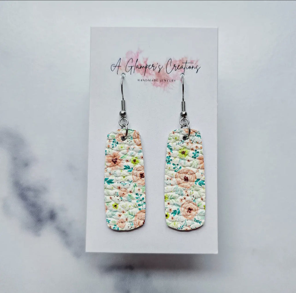Jewelry - Peach Spring Floral Mini Bar Leather Earrings