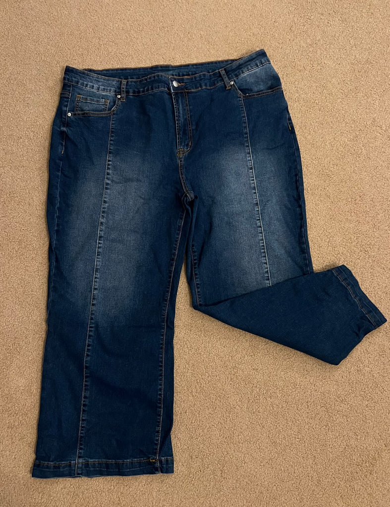 The seam down the front adds character and draws your eye in, which gives a slimmer look. These jeans have awesome stretch which makes them so comfy. They are not a heavy material so perfect to pair with your favorite Spring, Summer or Fall top for an awesome outfit.