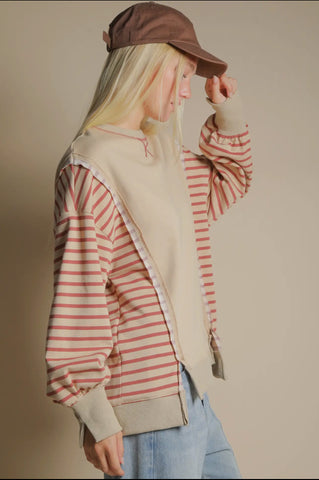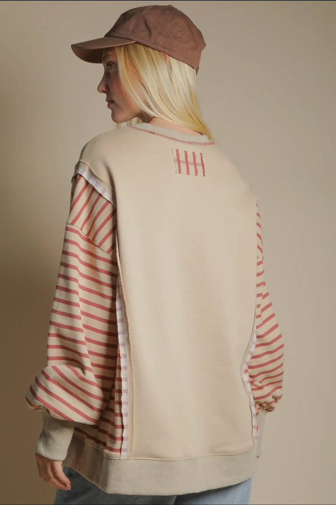 Oversized Striped Casual Knit Top, Beige, Plus Size