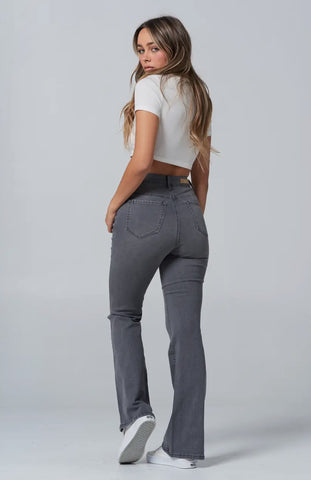 High Waist Boot Cut Flare Extreme Stretch Gray Jeans, Also Plus Size